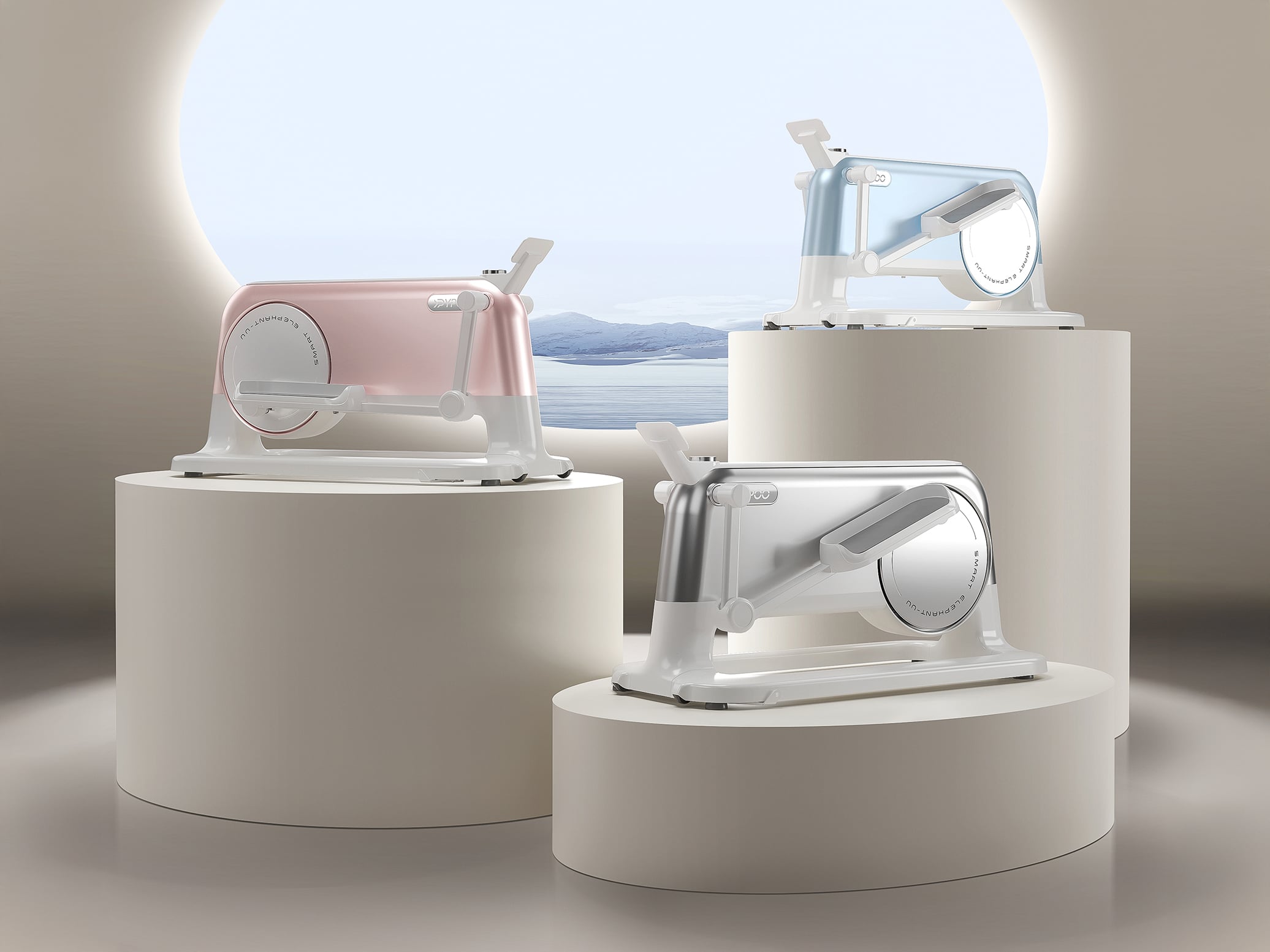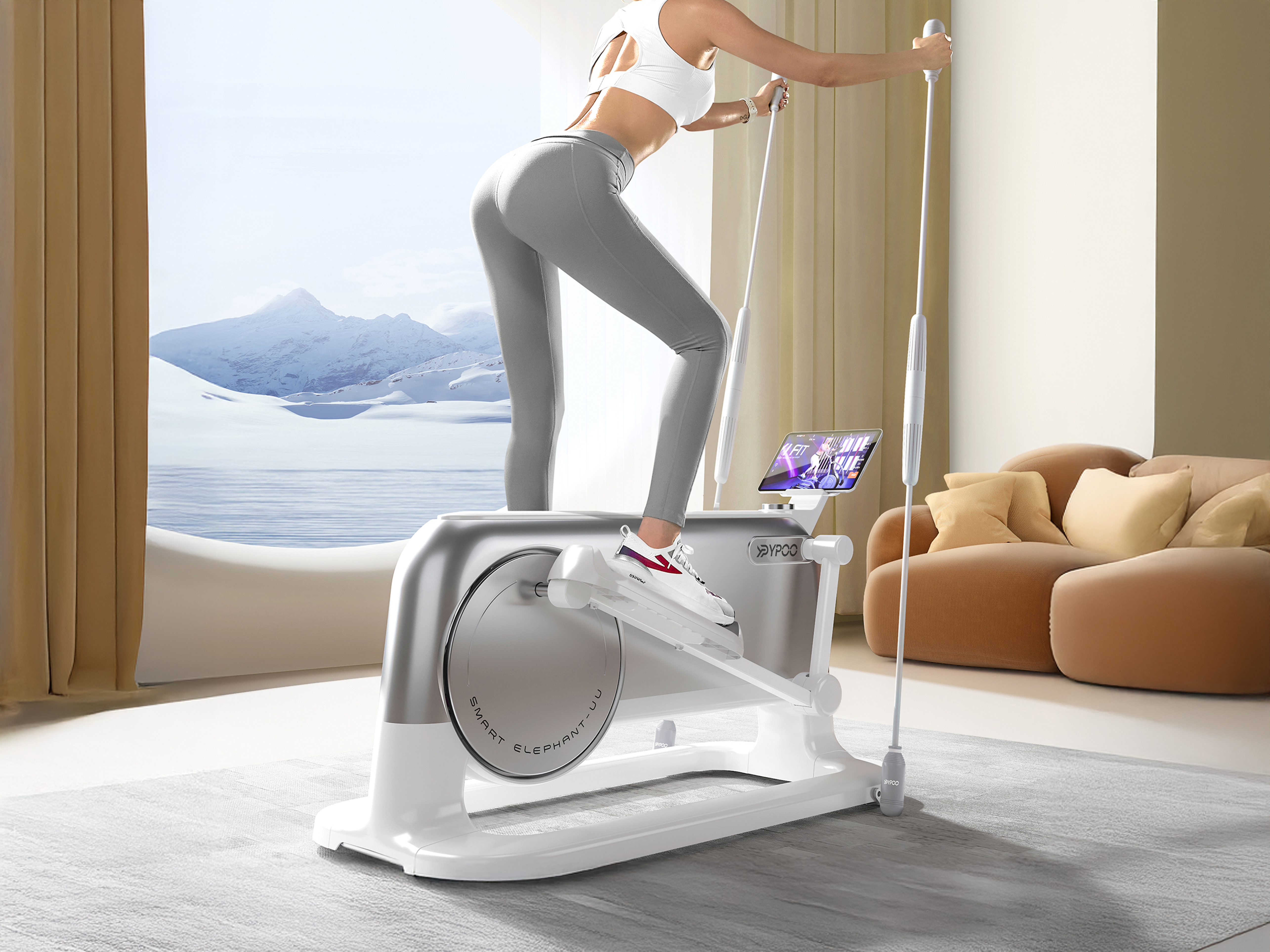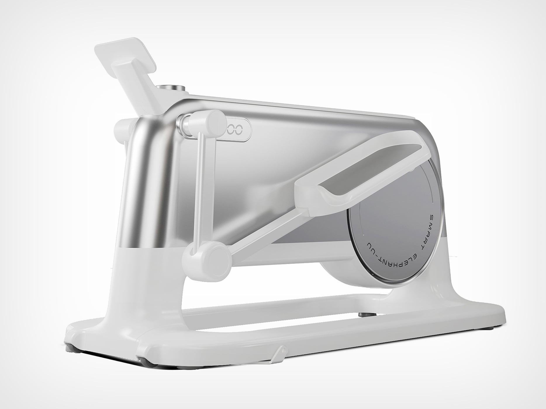 Fitness equipment rarely makes this cut. Even premium treadmills and bikes tend to occupy space through force rather than grace, their mechanical nature overwhelming any attempt at aesthetic integration. The Ypoo U U elliptical machine challenges this category assumption by treating the home as a gallery rather than a gym. The form is deliberately quiet: flowing white surfaces meet a single accent of brushed metal, creating visual interest through material contrast rather than sculptural complexity. That exposed circular flywheel housing becomes a focal point, the one moment where the machine admits its mechanical nature, but even this element feels considered, almost jewelry-like in its finish. The elastic resistance cords, rather than appearing as afterthought accessories, integrate into purposefully designed anchor points that read as intentional sculptural gestures.