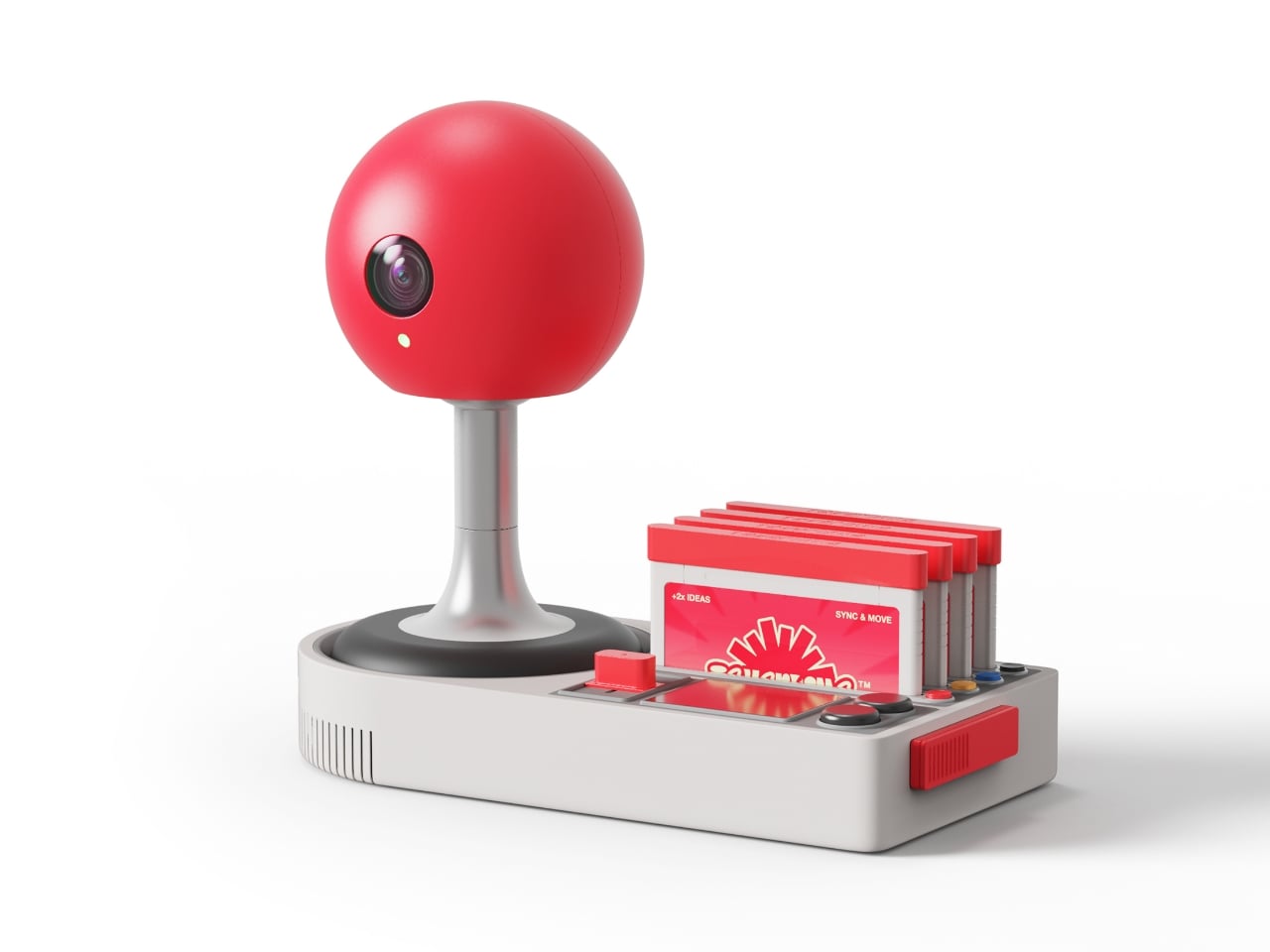 The concept is deceptively simple: what if meetings felt less like mandatory Zoom rectangles and more like gathering around a shared screen? The team created a physical meeting system inspired by retro game consoles, complete with a bright red spherical camera perched on a stand like some cheerful robot companion, and a base unit that wouldn’t look out of place next to your old Nintendo. There are even cartridge-style slots and that unmistakable game controller aesthetic, all rendered in a palette of scorched red, neon accents, and soft grays.