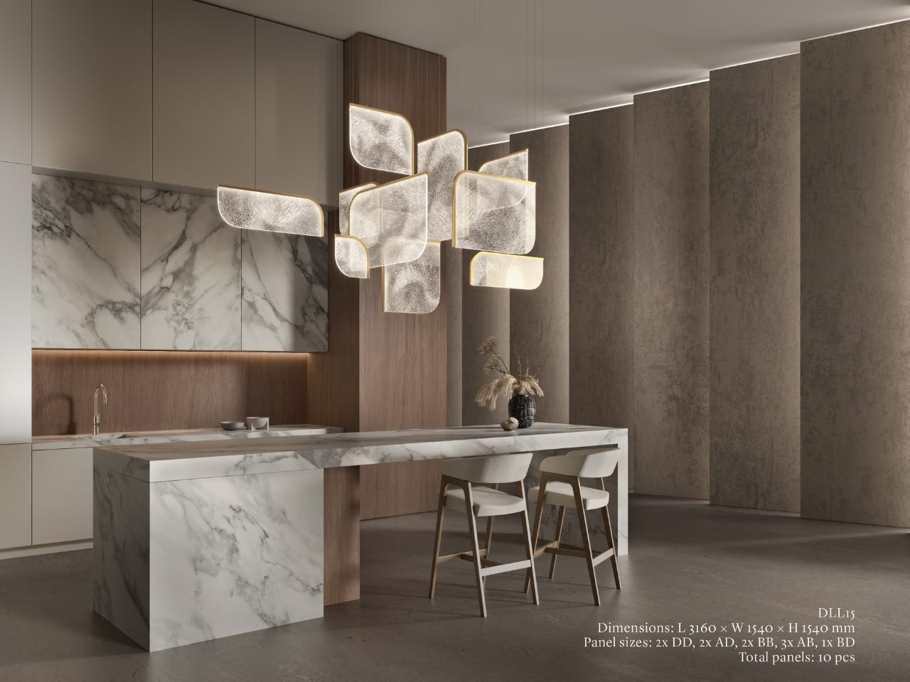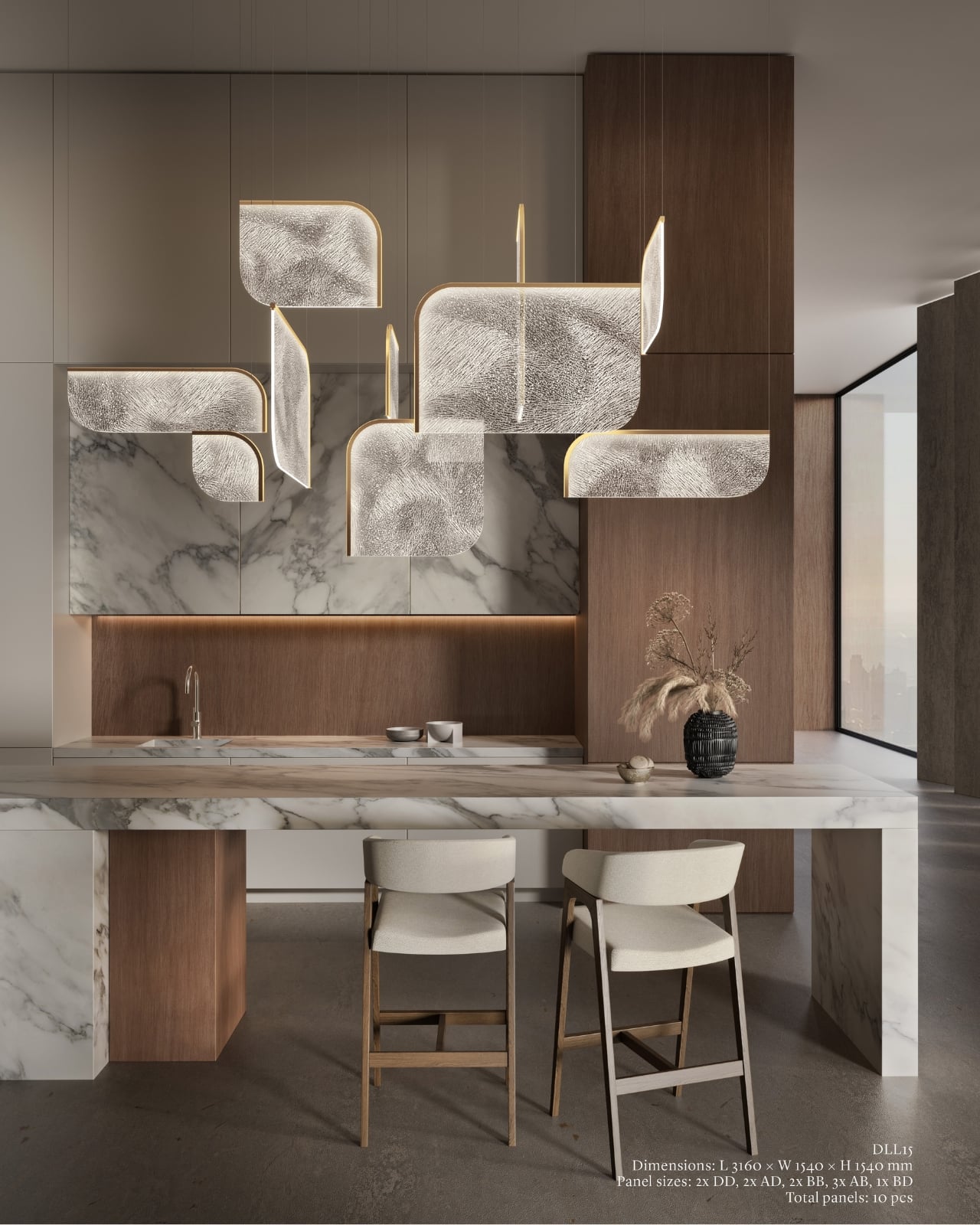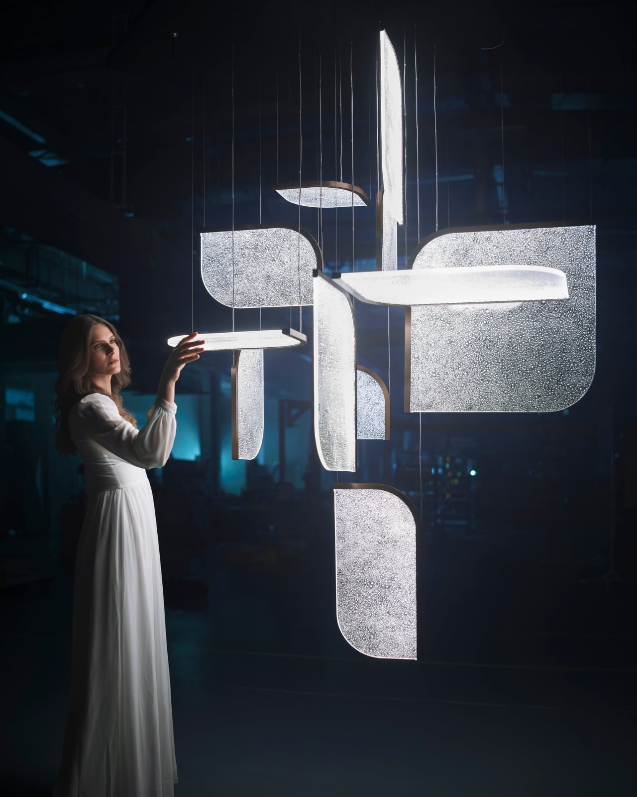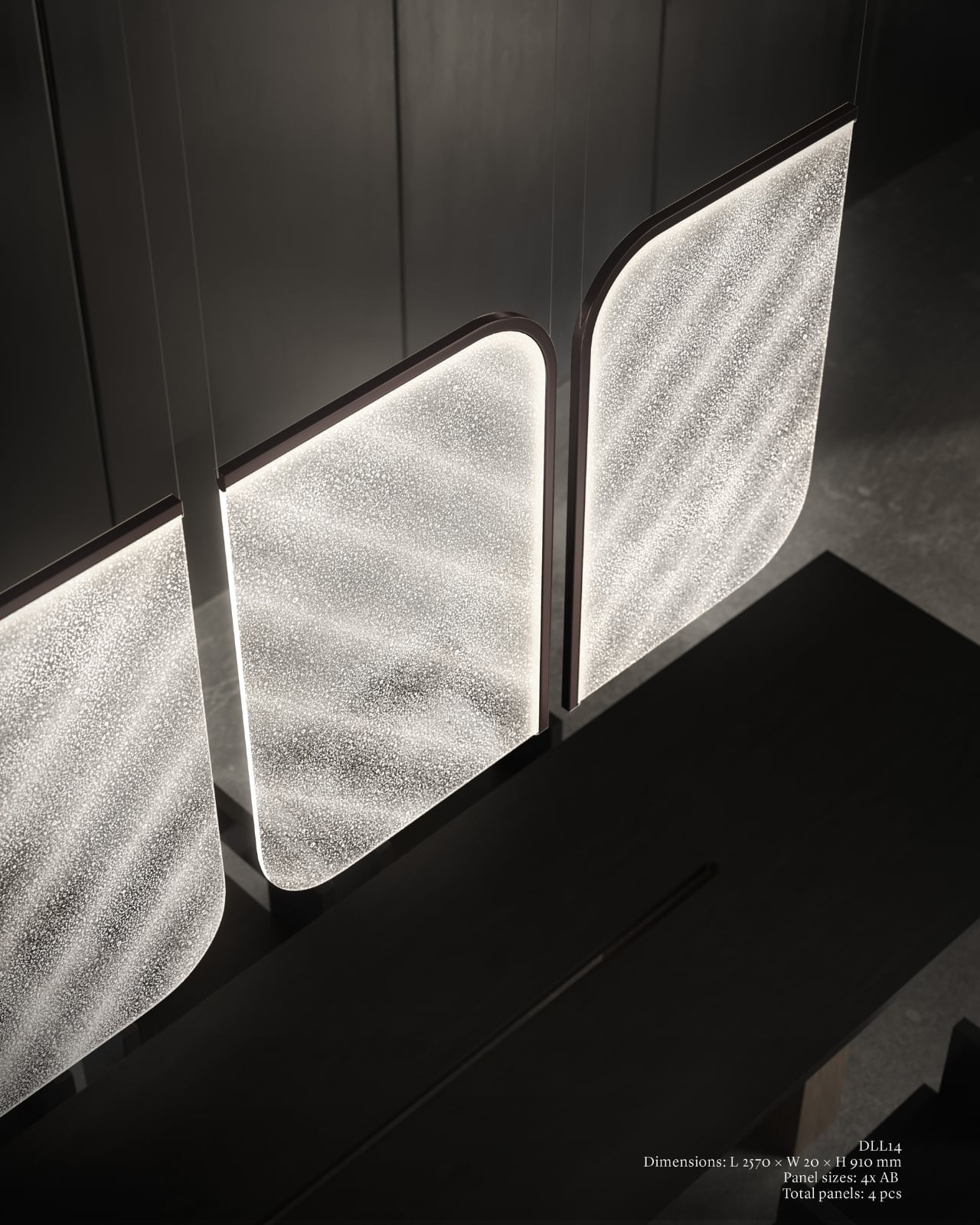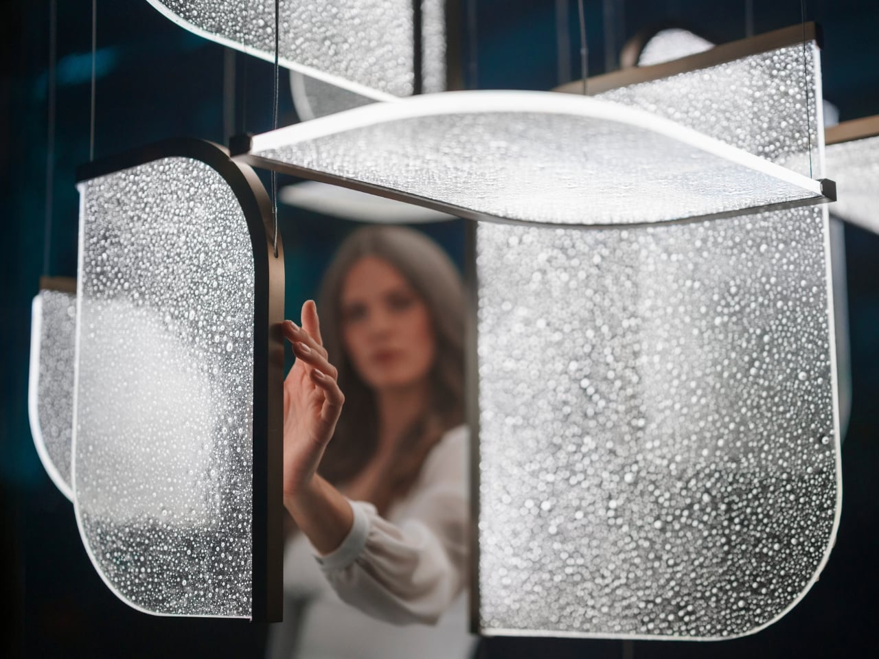 The Czech brand has been doing this long enough to know the difference between novelty and genuine craft. Their heritage is rooted in traditional glassmaking, but what they’ve built with Drifting Lights feels like a very deliberate step forward. Each piece is made up of oblong and square glass panels slotted into a stainless-steel frame that discreetly conceals an LED strip. Inside each panel, the glass has been infused with countless tiny air bubbles. When light passes through, it doesn’t just illuminate the glass. It gets lost in it, scattering through those bubbles in a way that looks less like electricity and more like light deciding where it wants to go.