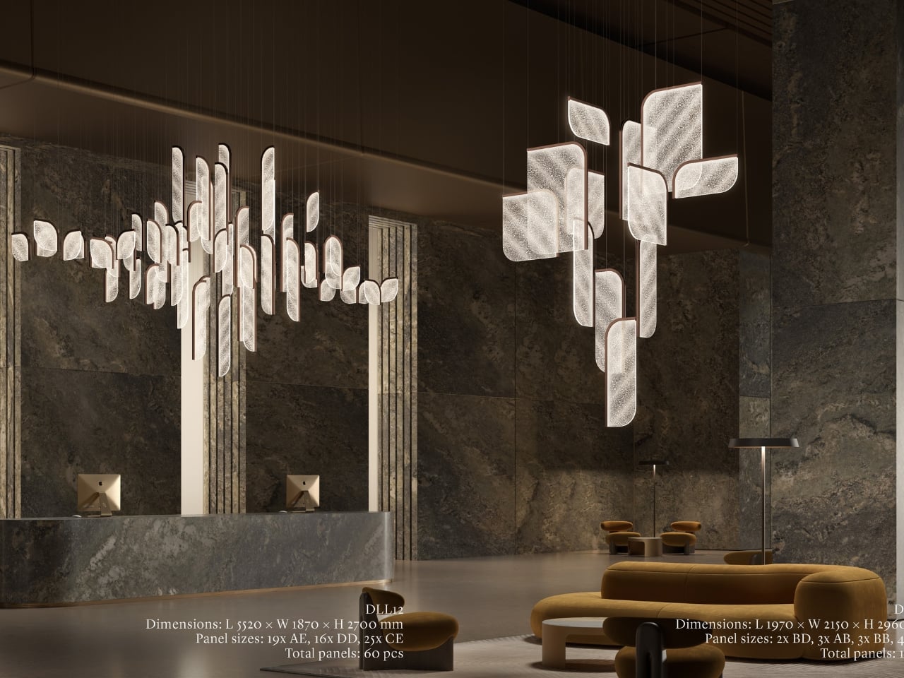 A design object earns its place when it works just as well outside a gallery as inside one, and Drifting Lights has clearly been thought through on that level. The panels come in ten sizes, with different metal frame finishes and the option to orient them vertically or horizontally. The same collection can fill a grand hotel lobby or anchor a living room without losing its character. For bespoke projects, Preciosa can apply a painting technique that introduces pigment bubbles into the glass, giving each panel a layer of quiet individuality. The bubbled glass can also be enhanced with their Fused Veil pattern, which shifts the direction of light and adds even more visual complexity.
