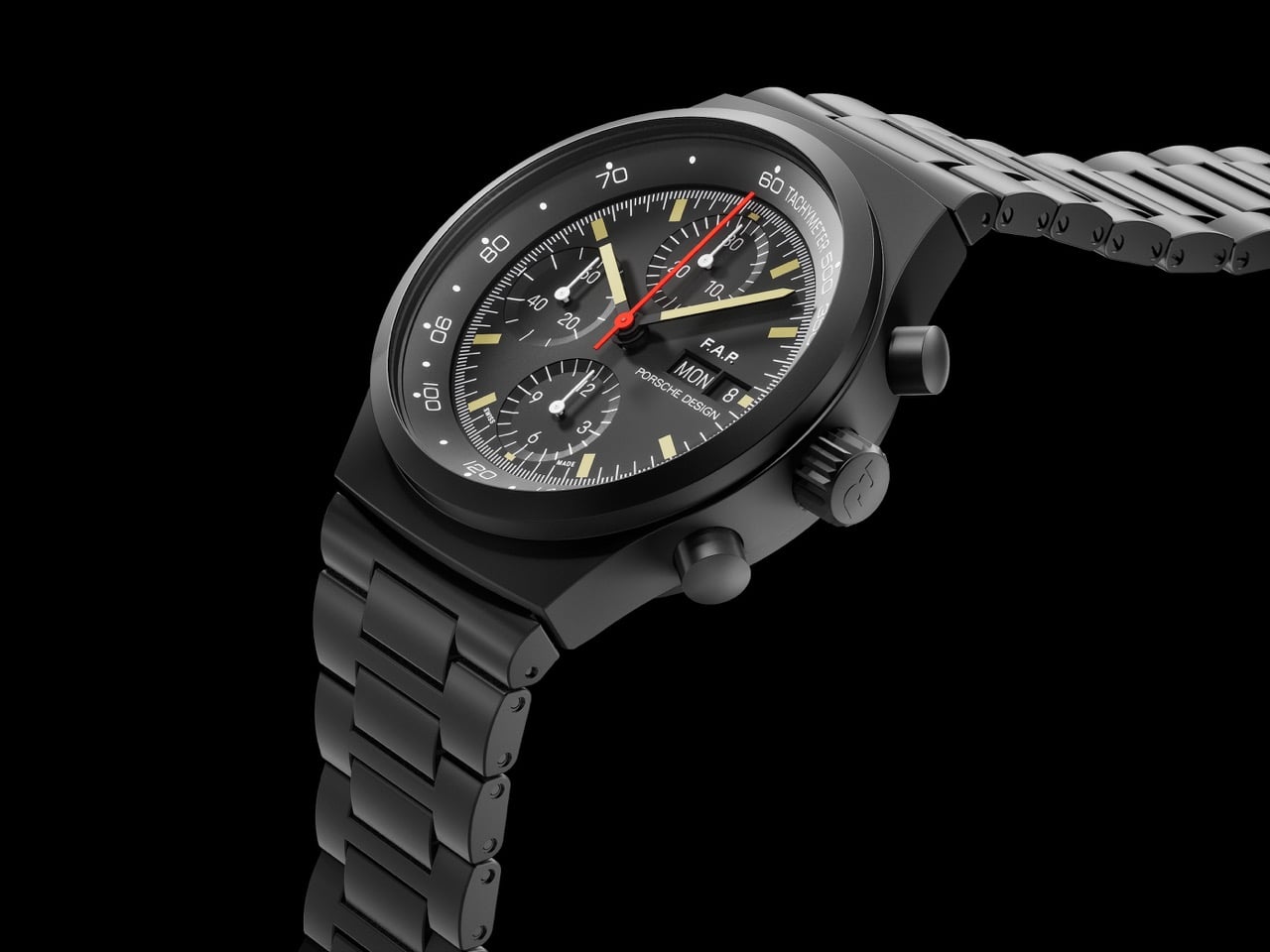 …so the first thing my brain did when I saw “F. A. P.” on the dial was laugh like a 12‑year‑old, and the second thing it did was realize Porsche Design just pulled off one of the most personal anniversary pieces they have ever done. The Chronograph 1 90 Years of F. A. Porsche sits in a weirdly perfect spot in the lineup. It rides on the modern Chronograph 1 architecture that came back in 2022, which itself is a faithful reboot of the 1972 all‑black original, but it quietly pivots the story from “50 years of a product” to “90 years of the guy who thought this way in the first place.” Same matte black instrument face, same integrated bracelet silhouette, same dashboard‑inspired layout, but now the watch talks about the designer more than the brand. That is a subtle shift, and it matters.