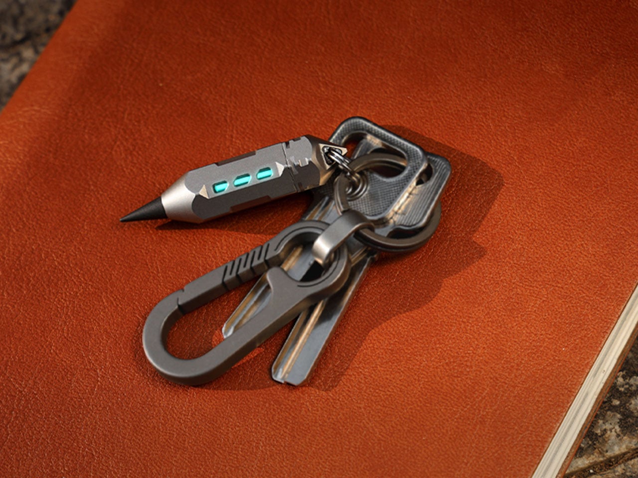 Besides, the EDC is a titanium glow multitool. It measures 2.16 × 0.54-inches, weighs only 0.55 oz, and features a built-in light in the portable pendant design. The light, instead of residing within a glass tube – as in the Dark Fire 1.0 – is packed in a titanium hollow window which shields its against shattering, yet provides a clear sight for soft glow. The tube also features a floating shock-absorbing mount comprising dual rubber end-balls and an internal O-ring for protection against bumps and drops.