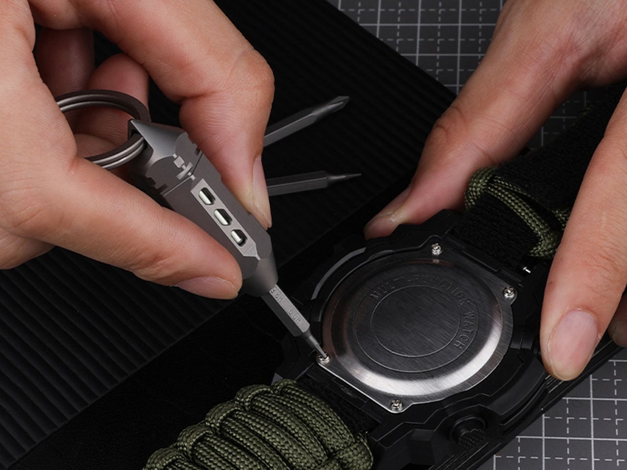 To that accord, MeTool has packed functionality into the pendant-sized EDC. It is made from a solid one-piece of precision-machined titanium and features an interesting rotary quick-release structure with tritium slots. The Dark Fire 2.0 body when twisted, opens up to reveal its true worth which is more than a pendant. Inside its 4 mm bit storage cavity hides a screw driver, a pry bar and a pen tip. And when the quick-release top is twisted, you can install the pen tip or replace it with the screw driver and get the work done instantaneously.