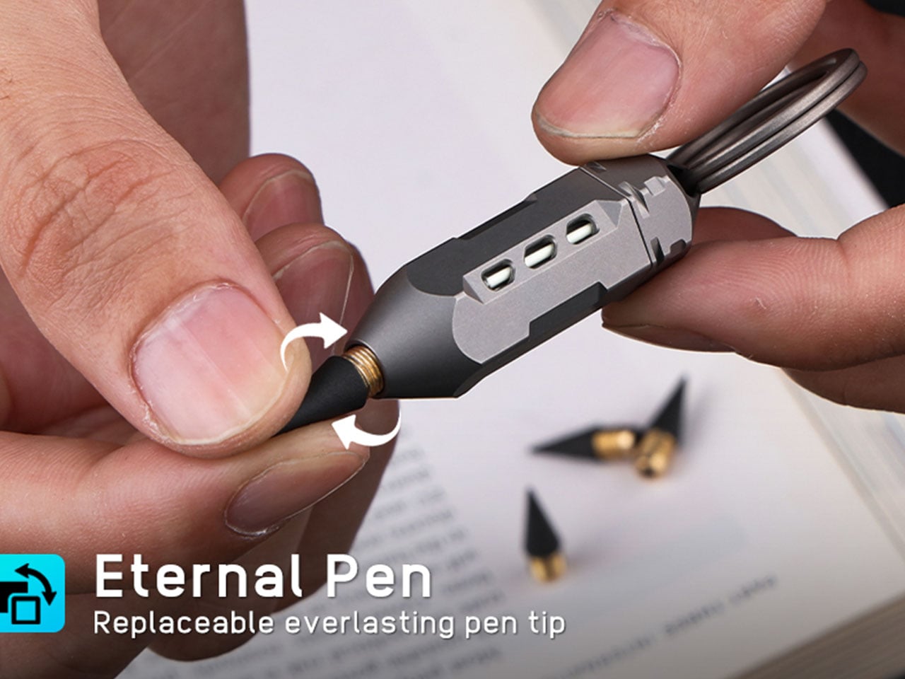 What really makes the Dark Fire 2.0 stand out in addition to the compact form factor and versatility, is its pen. It uses solid graphite rather than ink and is designed to never dry out or smudge. What you write with it stays there even through rain and regular wear. You can use the scribble of paper, wood, or leather, and the eco-friendly pen will do the writing without ink or cartridge. If the EDC has you intrigued, you can preorder it now on Kickstarter at a handsome super early bird discount.