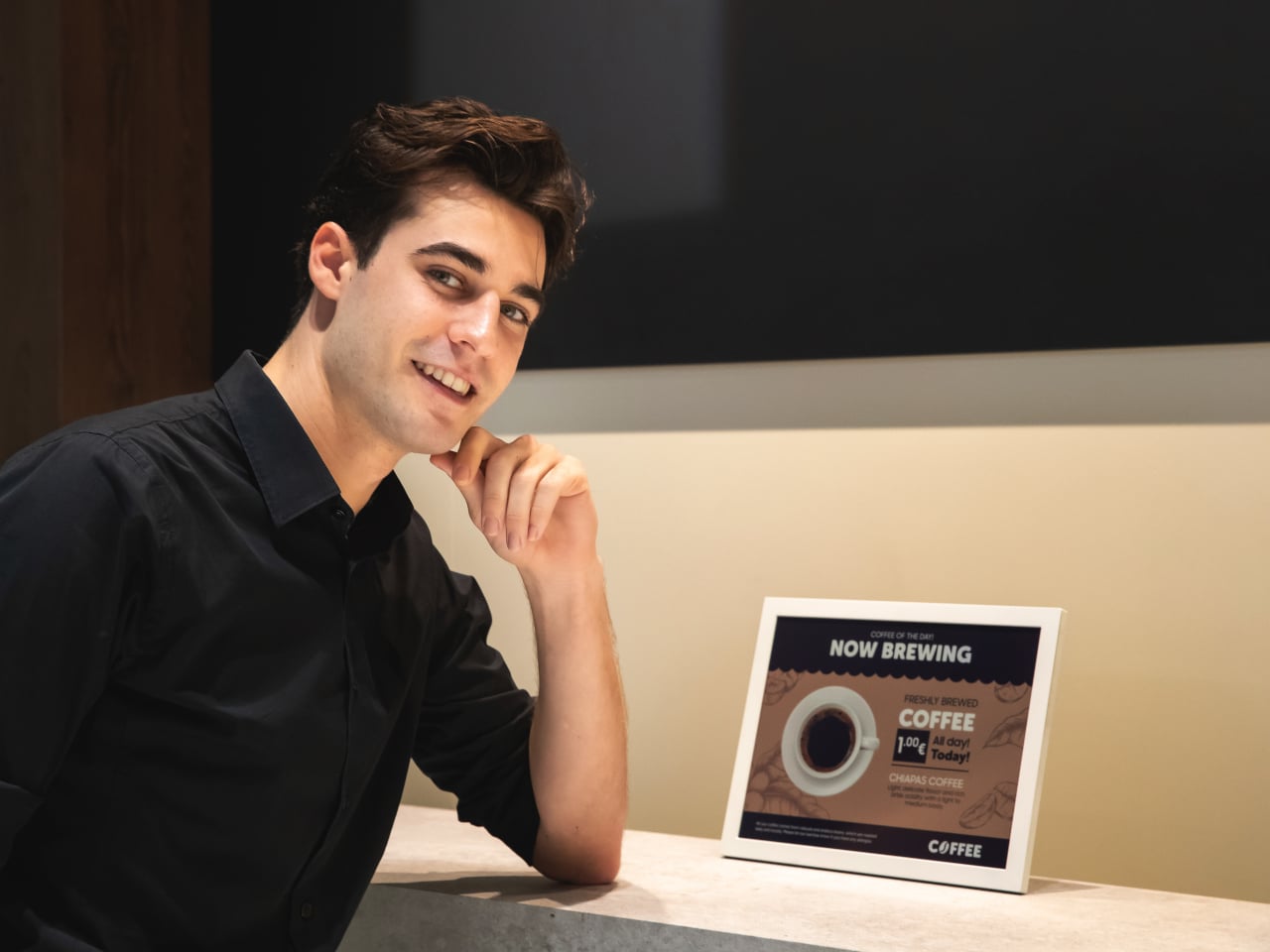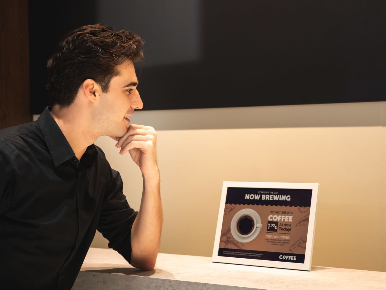A grocery aisle, cosmetics shelf, or bookstore with weekly specials could run these panels instead of printed posters. Staff update prices and layouts from their phones using the Samsung E-Paper app, or centrally through Samsung’s VXT cloud platform, without ladders, tape, or stacks of paper. The signs look like printed cards but can flip to a new campaign in seconds.